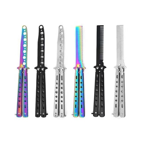 Custom Logo Rvs Vouwkam Modieuze Outdoor Pocket Vlindermes Kam Voor Salon Training En Praktijk