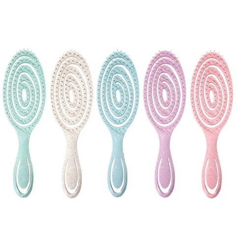 Vrouwen Pluizig Gevormde Ontwarren Massage Kam Custom Logo Tarwestrohaar Styling Borstel Nylon Materiaal 3 Stuks Moq